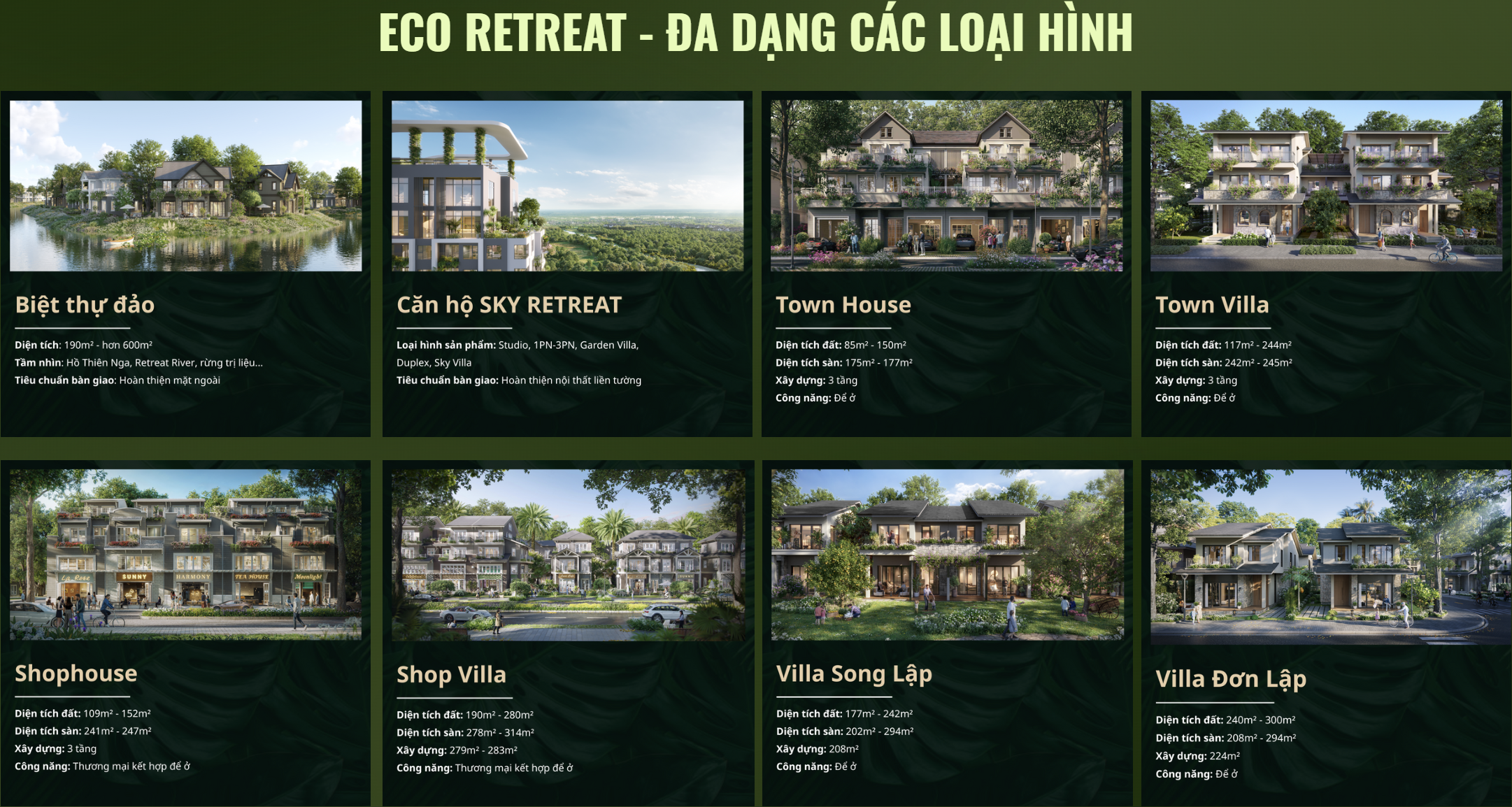 Dự án không chỉ mở ra cơ hội an cư lý tưởng cho cư dân thành đạt tại miền Nam mà còn là bức tranh sống động đầy tiềm năng của thị trường bất động sản nghỉ dưỡng phía Tây TP.HCM. Với vị trí chiến lược, hệ sinh thái tiện ích chuẩn wellness và không gian sống đậm chất resort, Eco Retreat xứng đáng là biểu tượng đô thị nghỉ dưỡng mới tại Long An.